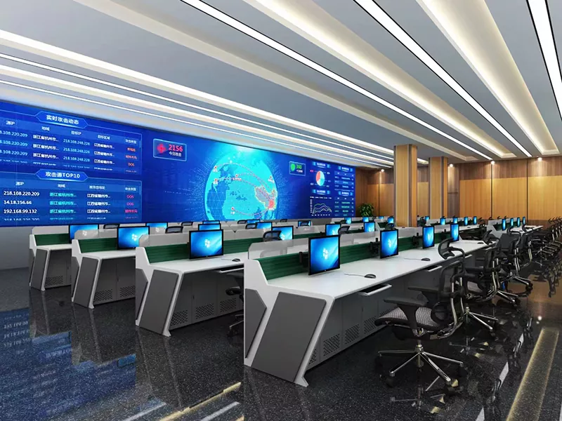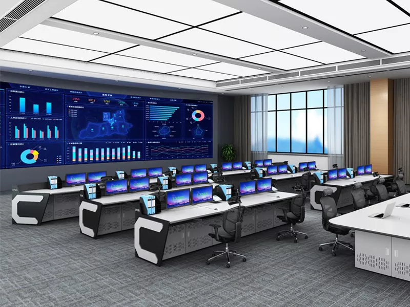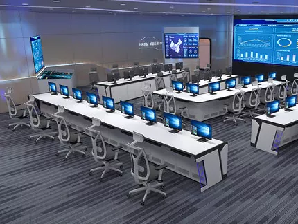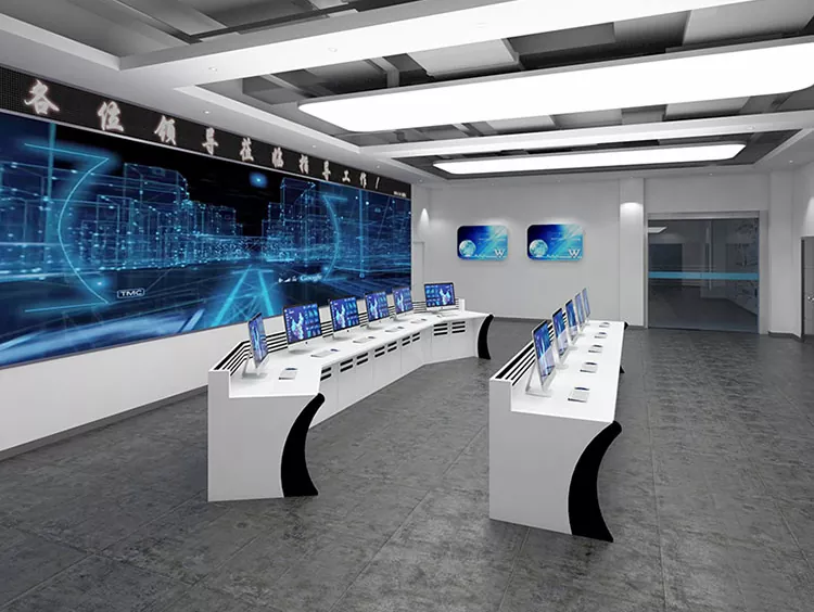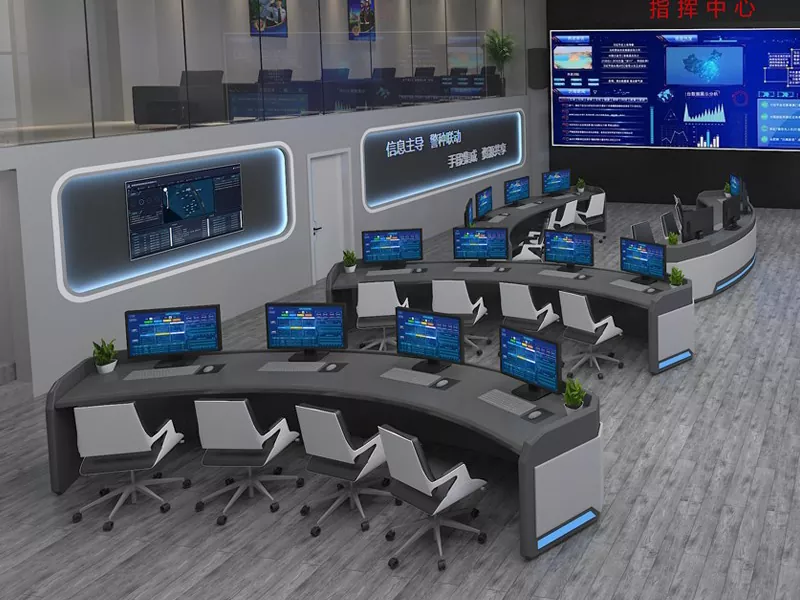 2. संरचना र आकार: कमाण्ड सेन्टर स्पेस र परिचालन आवश्यकताहरूको आधारमा सीधा, L-आकारको, U-आकारको, वा अनुकूलन डिजाइनहरू चयन गर्नुहोस्, उपकरण र कर्मचारीहरूको लागि पर्याप्त ठाउँ छोडेर।