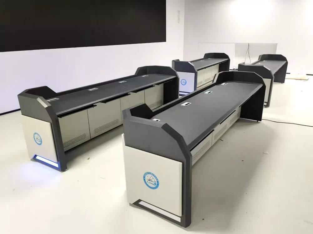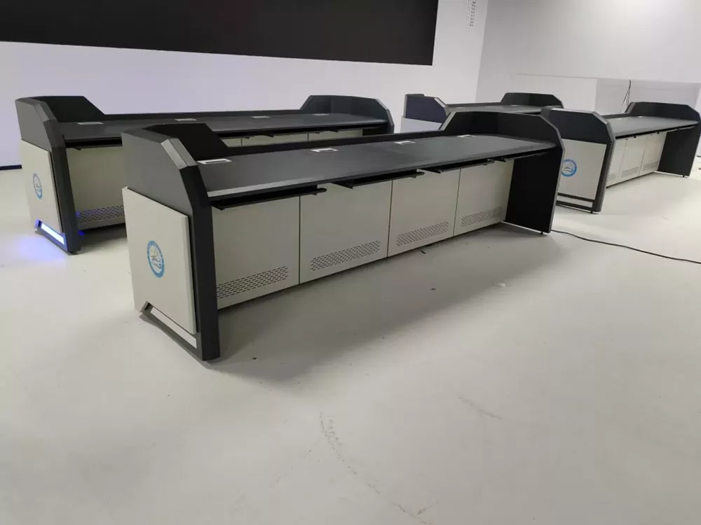 उत्पादनले एक मोड्युलर डिजाइन सुविधा दिन्छ, आधारभूत एकाइको रूपमा एकल एकाइको साथ जुन लचिलो रूपमा लम्बाइमा विभिन्न स्थानिय लेआउटहरूमा अनुकूलन गर्न सकिन्छ। यसको सफा र सरल सीधा-रेखा आकार संगठित बहु-कार्यस्थान लेआउट र कर्मचारी सहयोग को सुविधा दिंदा निगरानी कोठा ठाउँ को उपयोग को अधिकतम गर्दछ। सटीक शीट मेटल प्रशोधन मार्फत उच्च-शक्तिको कोल्ड-रोल्ड स्टिल प्लेटबाट बनेको, सतहलाई इलेक्ट्रोस्टेटिक पाउडर कोटिंगले उपचार गरिन्छ, यसलाई रस्ट-प्रूफ, पहिरन-प्रतिरोधी, र सफा गर्न र मर्मत गर्न सजिलो बनाउँदछ।