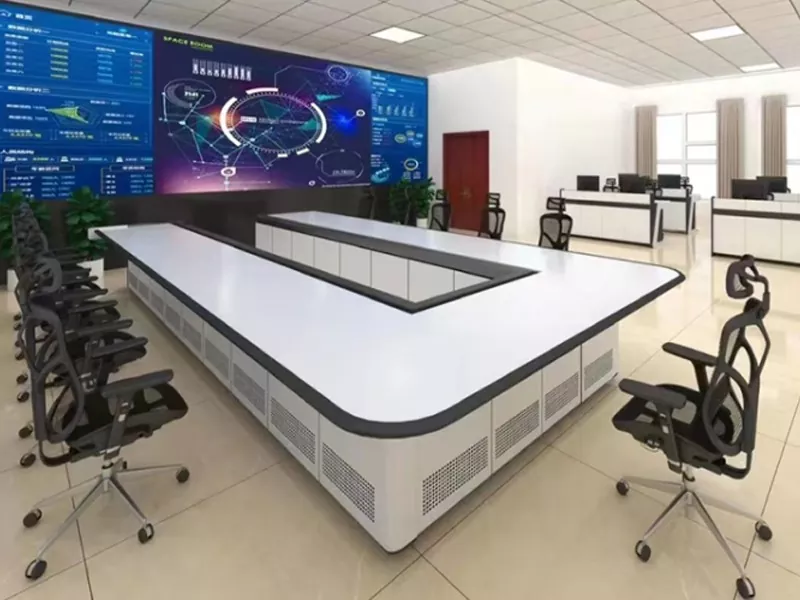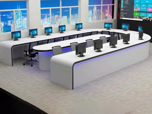 उत्पादनले अनुगमन उपकरणको केन्द्रीकृत तैनाती, बहु-कोण सूचना प्रदर्शन, र कुशल सहयोगी सञ्चालनलाई सक्षम पार्दै, एक र्यापराउन्ड U-आकारको संरचना डिजाइन सुविधा दिन्छ। यो व्यापक रूपमा सरकारी आदेश केन्द्रहरू, उद्यम निगरानी कोठा, शहरी सुरक्षा प्रणाली, र ऊर्जा प्रेषण केन्द्रहरूमा प्रयोग गरिएको छ।