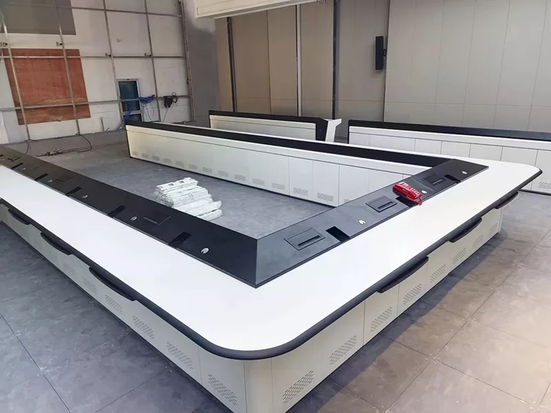 दुबै छेउमा विस्तारित क्षेत्रहरूले थप मेनफ्रेमहरू, मनिटरहरू, र सञ्चार उपकरणहरू समायोजन गर्न सक्छन्। आन्तरिक लुकाइएको केबल व्यवस्थापन प्रणालीले स्पष्ट केबल रूटिङ र सुविधाजनक मर्मतसम्भार सुनिश्चित गर्दछ, जबकि बहु-व्यक्ति सहयोगी कार्यको आवश्यकताहरू पूरा गर्न पर्याप्त मार्ग प्रदान गर्दछ, ग्राहकहरूलाई मानकीकृत र व्यवस्थित कमाण्ड सेन्टर वातावरण निर्माण गर्न मद्दत गर्दछ।